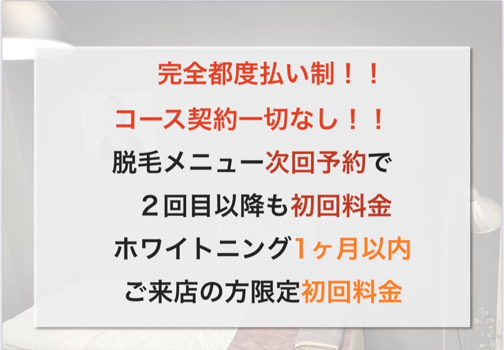 そして、二回目以降も通っていただけやすいように次回予約で初回クーポンのお値段でご案内しております!