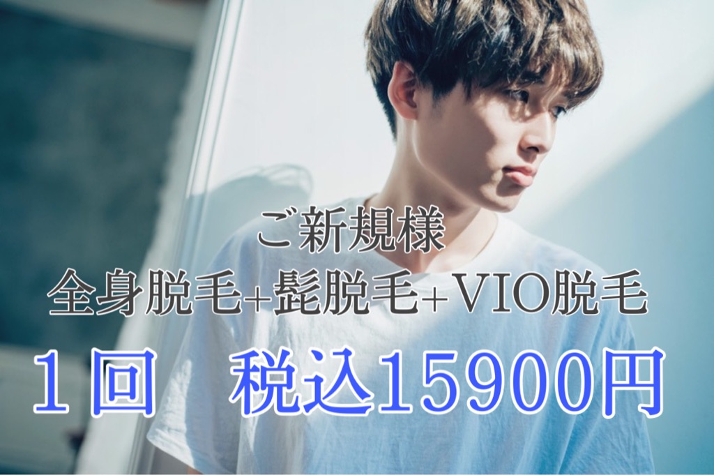 全身脱毛がお得になりました!!2月になりメンズ脱毛される方が徐々に増えてきております!夏までに綺麗にされたい方は今から脱毛する事をオススメします!そこでお得な全身脱毛のご紹介をします!!通常26000円の全身脱毛+髭脱毛+VIO脱毛が今ならご新規様全身脱毛+髭脱毛+VIO脱毛が1回 15900円でする事が出来ます!!また、学割U24 全24歳までの方は全身脱毛+髭脱毛+VIO脱毛が税込13000円です!!かなりお得になっているのでムダ毛で悩まれている方は是非一度体験してみてください♪脱毛する事によってお肌も綺麗にしてくれる効果もあります!髭脱毛だけや、足脱毛などのお得なクーポンもあります!ご予約、お得なクーポンはこちらからお願いします!駅近で仕事帰りやお買い物のついでに寄って頂けやすくなっております!