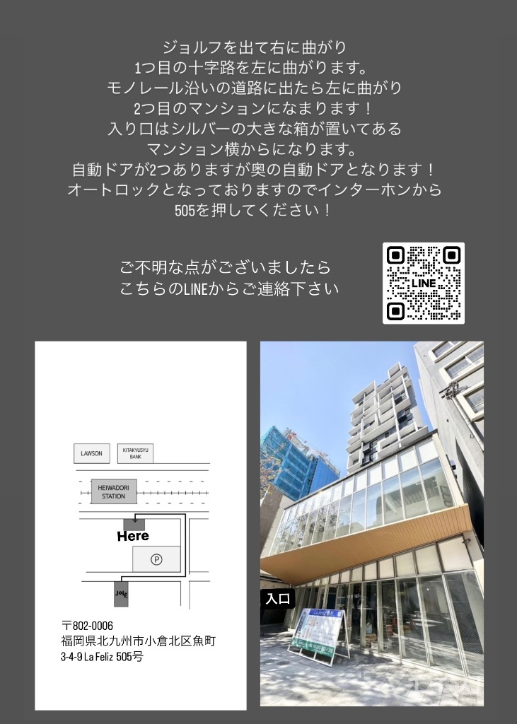 エレベーターで上がって降りてからはドアにJOLFの看板を貼っているのでインターホンでお知らせください!!